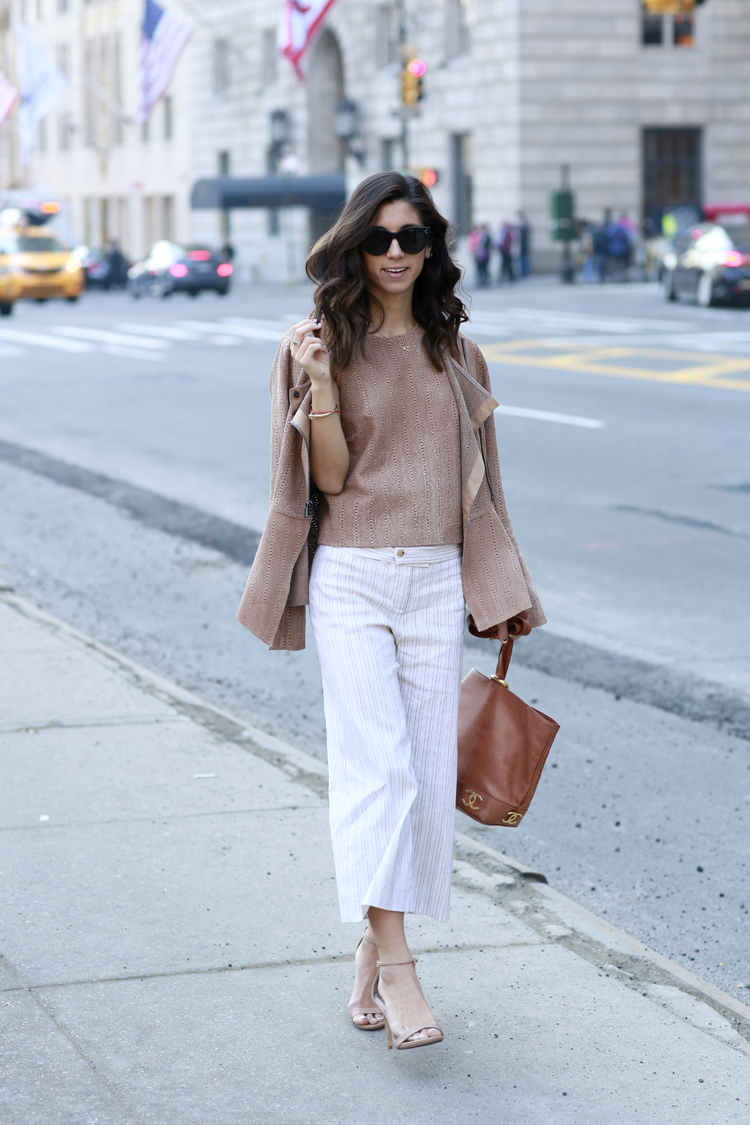 Top and culottes: Vetta (borrowed); Shoes: Steve Madden; Bag: Chanel; Sunglasses: Celine