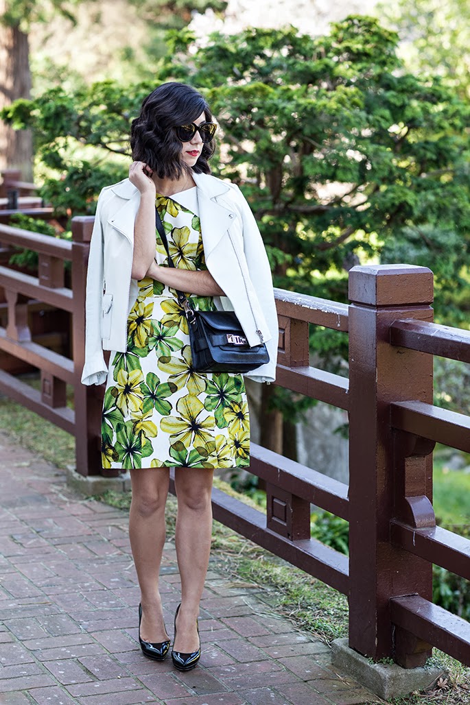 This is so making me miss CA and wearing dresses with no tights in the winter! Love the print & the the jacket you paired with it.